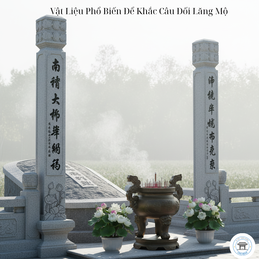 Trong văn hóa tâm linh của người Việt, câu đối lăng mộ không chỉ mang ý nghĩa tưởng nhớ và tri ân tổ tiên, mà còn thể hiện đạo hiếu, sự gắn kết của con cháu đối với nguồn cội. Để câu đối tồn tại bền lâu cùng thời gian, việc lựa chọn vật liệu khắc câu đối là vô cùng quan trọng. Vật liệu không chỉ quyết định độ bền, tính thẩm mỹ, mà còn góp phần làm nổi bật sự trang nghiêm, cổ kính của lăng mộ.