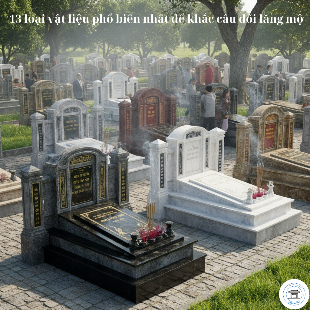 Bài viết này sẽ tổng hợp 13 loại vật liệu phổ biến nhất để khắc câu đối lăng mộ, phân tích ưu – nhược điểm và gợi ý lựa chọn phù hợp với từng gia đình.