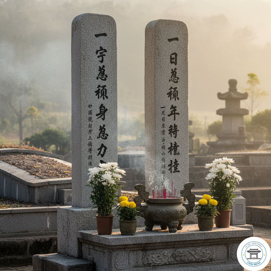 Trong đời sống tâm linh của người Việt, câu đối lăng mộ chữ Hán Việt không chỉ có tính trang trí. Đây còn là lời nhắn gửi thiêng liêng của người sống dành cho người đã khuất. Mỗi vế câu đối khắc trên bia mộ đều chứa đựng giá trị tinh thần sâu sắc.