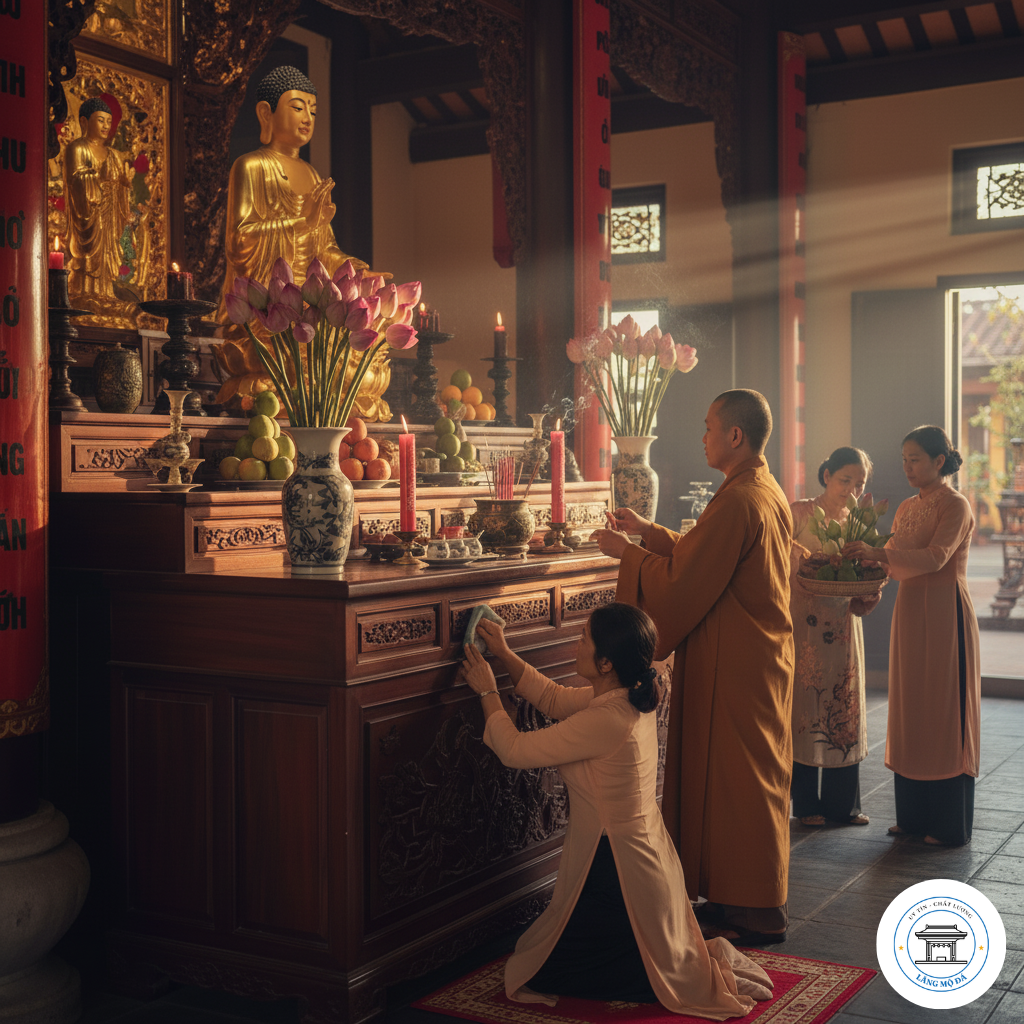 - Ngoài việc cúng tại nhà, nên đến chùa tụng kinh, cúng dường để tăng thêm phước lành.