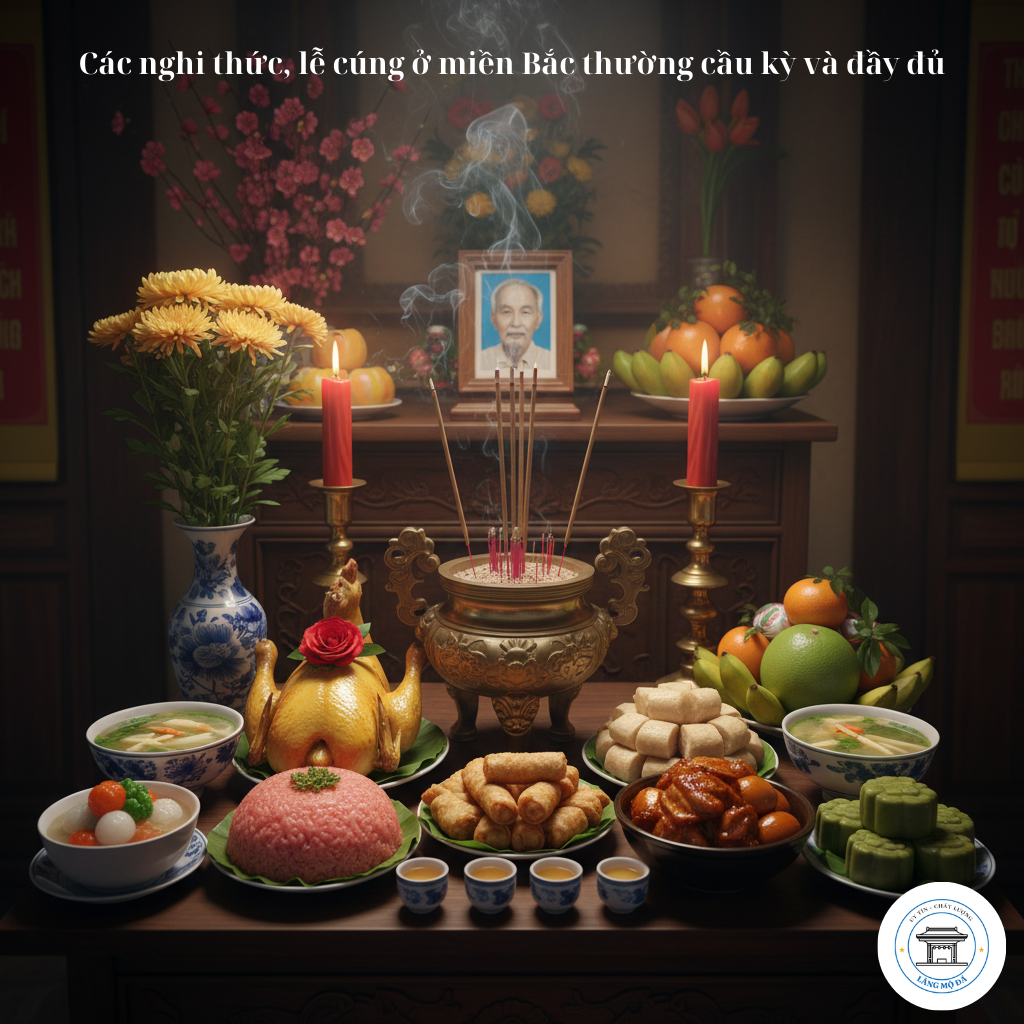 Miền Bắc vốn nổi tiếng giữ gìn truyền thống lâu đời. Các nghi thức, lễ cúng ở đây thường cầu kỳ và đầy đủ. Mâm cỗ phải tươm tất, chu đáo, thể hiện sự trọn vẹn.