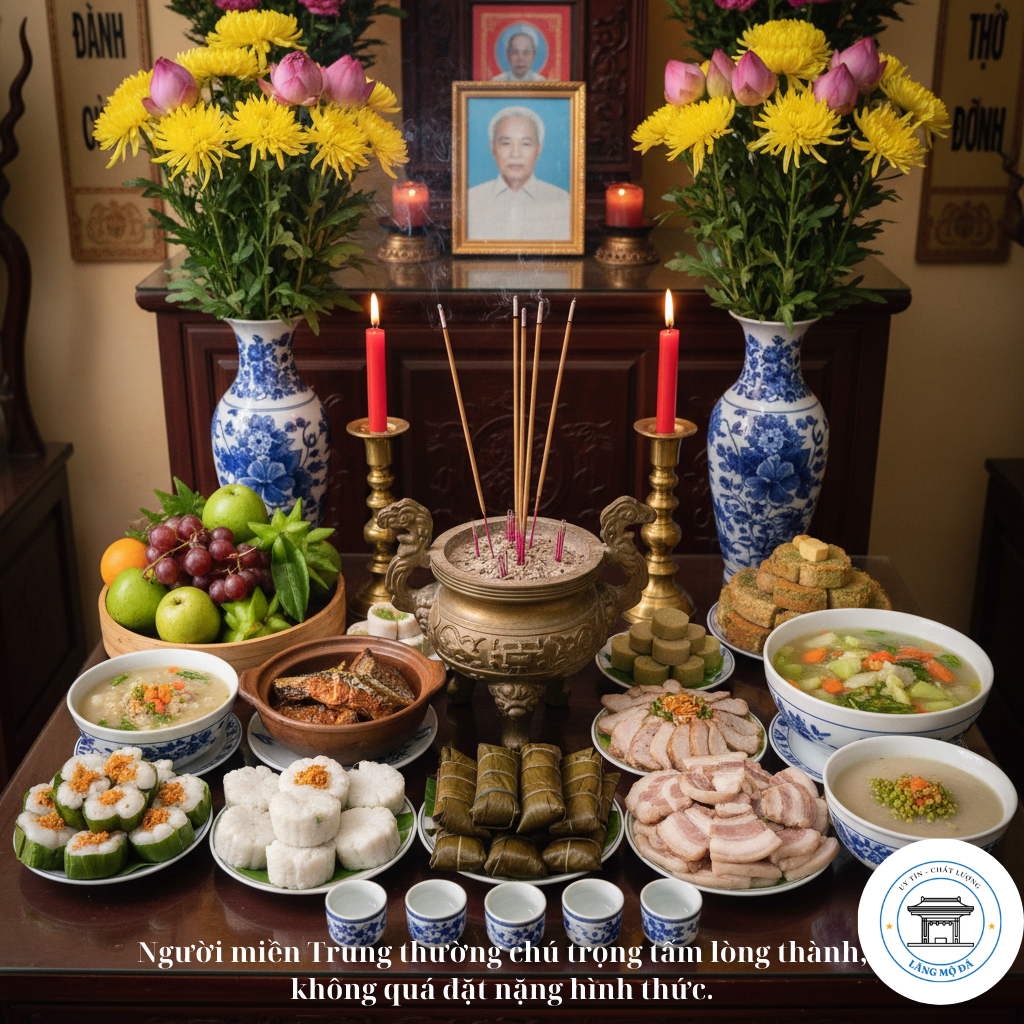 Miền Trung có lối sống tiết kiệm, giản dị nhưng rất coi trọng lễ nghĩa. Do đó, mâm cúng thường không cầu kỳ như miền Bắc, nhưng lại chứa đựng nhiều nét đặc sắc riêng.