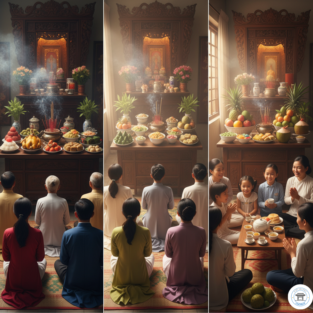 - Nghi thức: thắp hương, khấn nguyện, tưởng nhớ.